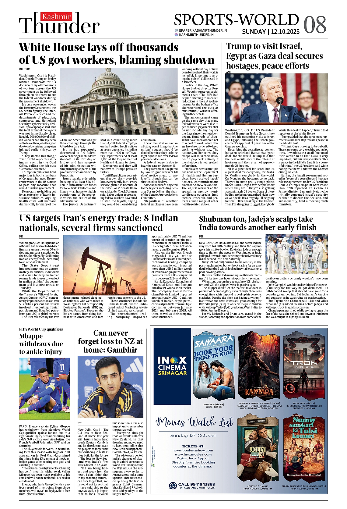 Kashmir Thunder OCT 12 , 2025 Page: 7 Kashmir Thunder OCT 12 , 2025 × Kashmir Thunder OCT 12 , 2025 12 T3 T4567 T8 T Full PDF