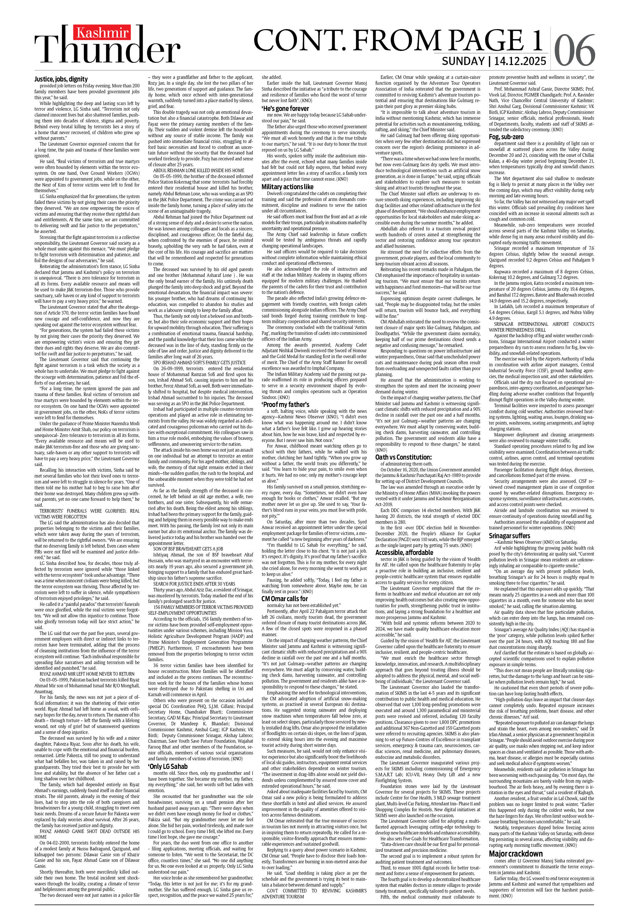 Kashmir Thunder DEC 14, 2025 Page: 6 Kashmir Thunder DEC 14, 2025 × Kashmir Thunder DEC 14, 2025 12 T3 T4567 T8 T Full PDF