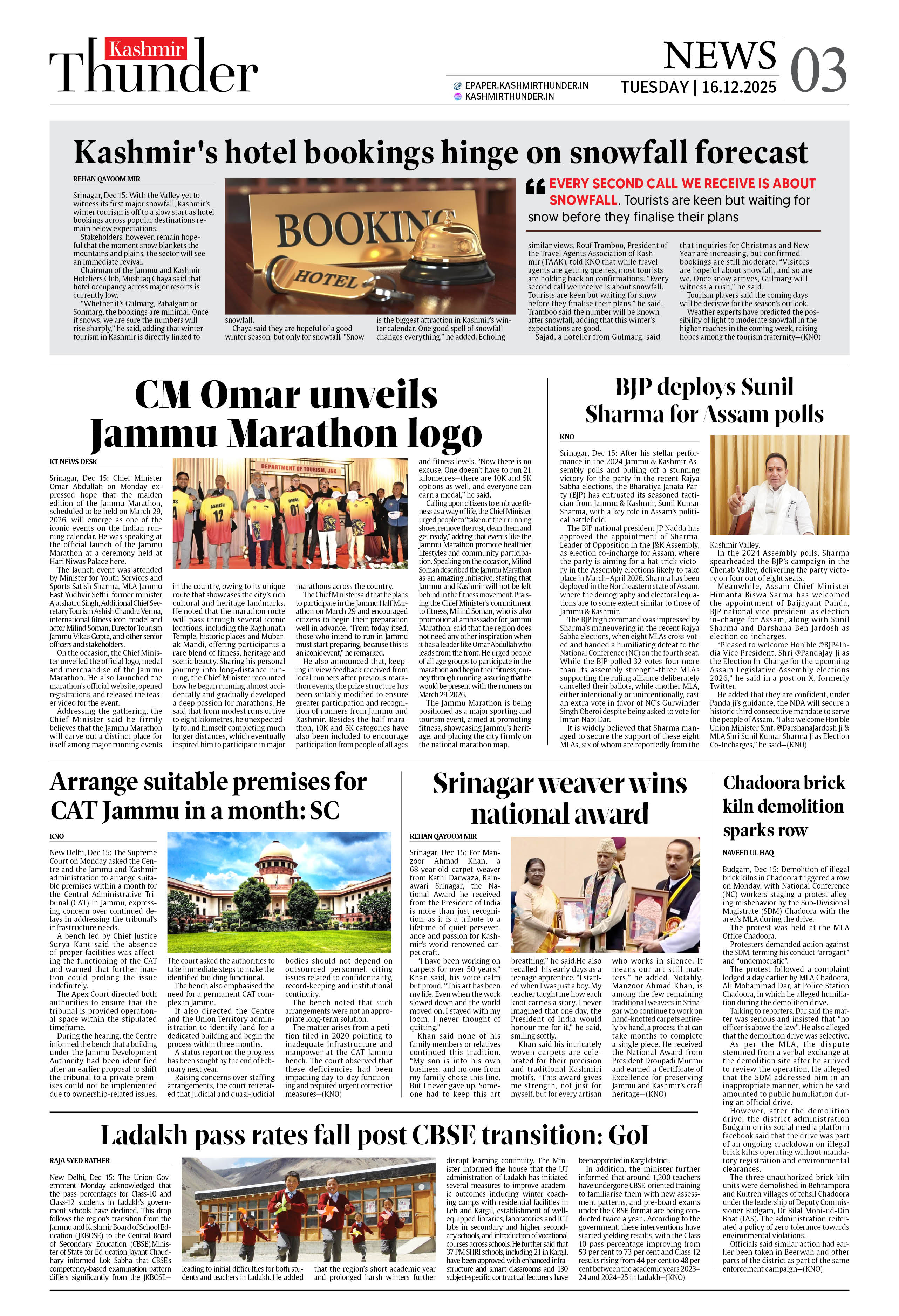 Kashmir Thunder DEC 16, 2025 Page: 3 Kashmir Thunder DEC 16, 2025 × Kashmir Thunder DEC 16, 2025 12 T3 T4567 T8 T Full PDF