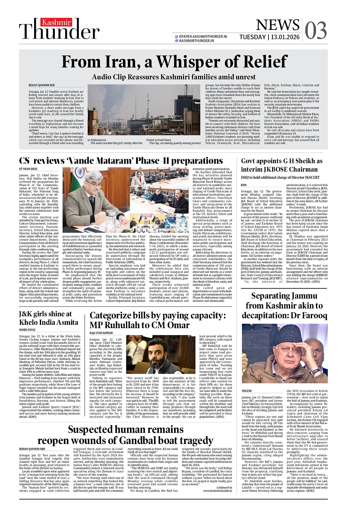 Kashmir Thunder JAN 13 2026 Page: 3 Kashmir Thunder JAN 13 2026 × Kashmir Thunder JAN 13 2026 12 T3 T4567 T8 T Full PDF