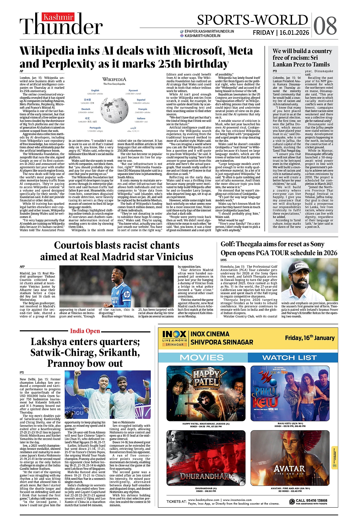 Kashmir Thunder JAN 16 2026 Page: 8 Kashmir Thunder JAN 16 2026 × Kashmir Thunder JAN 16 2026 12 T3 T4567 T8 T Full PDF