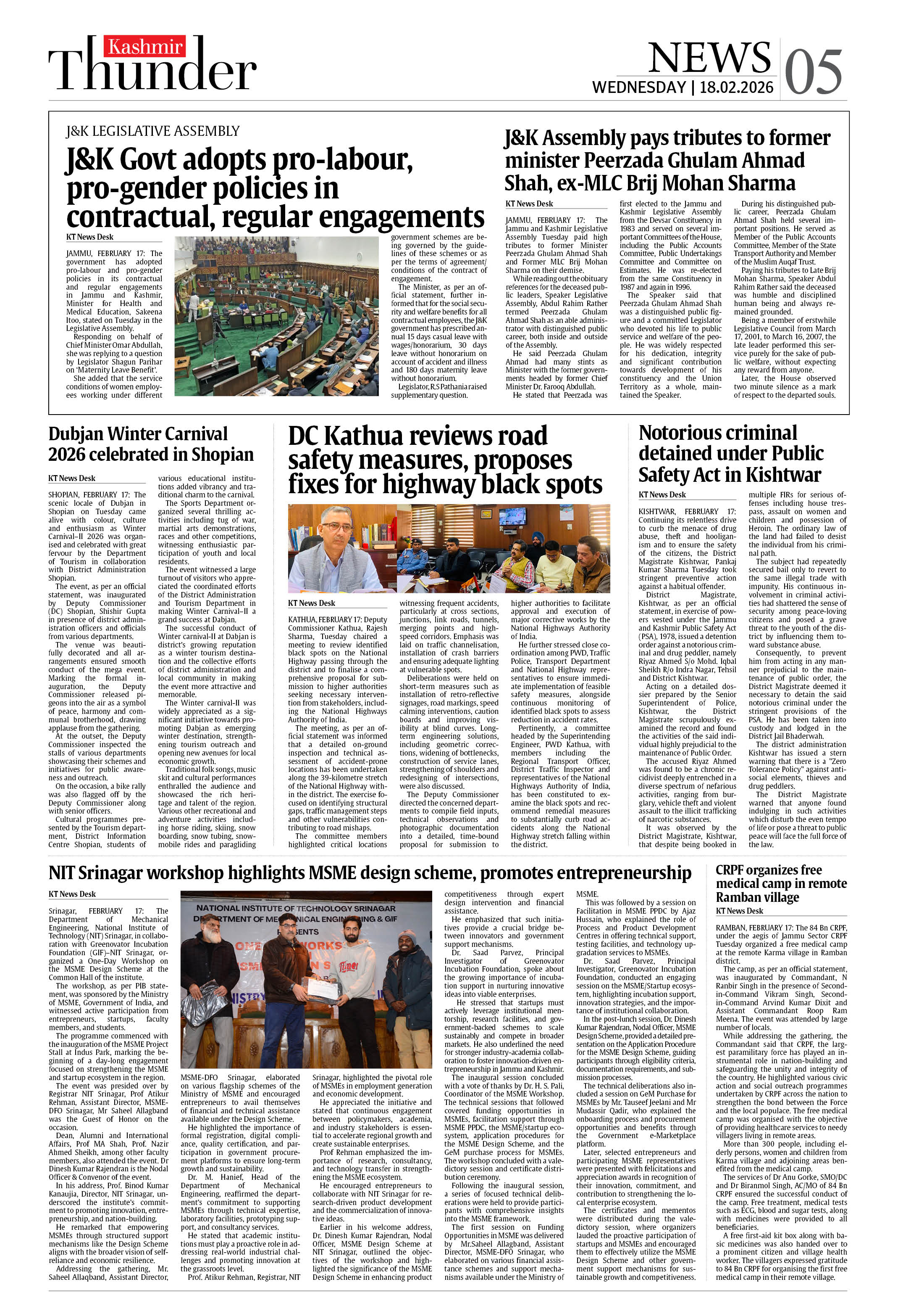 Kashmir Thunder FEB 18 2026 Page: 5 Kashmir Thunder FEB 18 2026 × Kashmir Thunder FEB 18 2026 12 T3 T4567 T8 T Full PDF