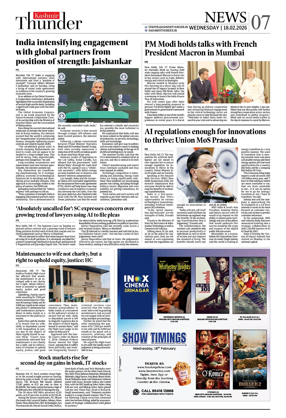 Kashmir Thunder FEB 18 2026 Page: 7 Kashmir Thunder FEB 18 2026 × Kashmir Thunder FEB 18 2026 12 T3 T4567 T8 T Full PDF