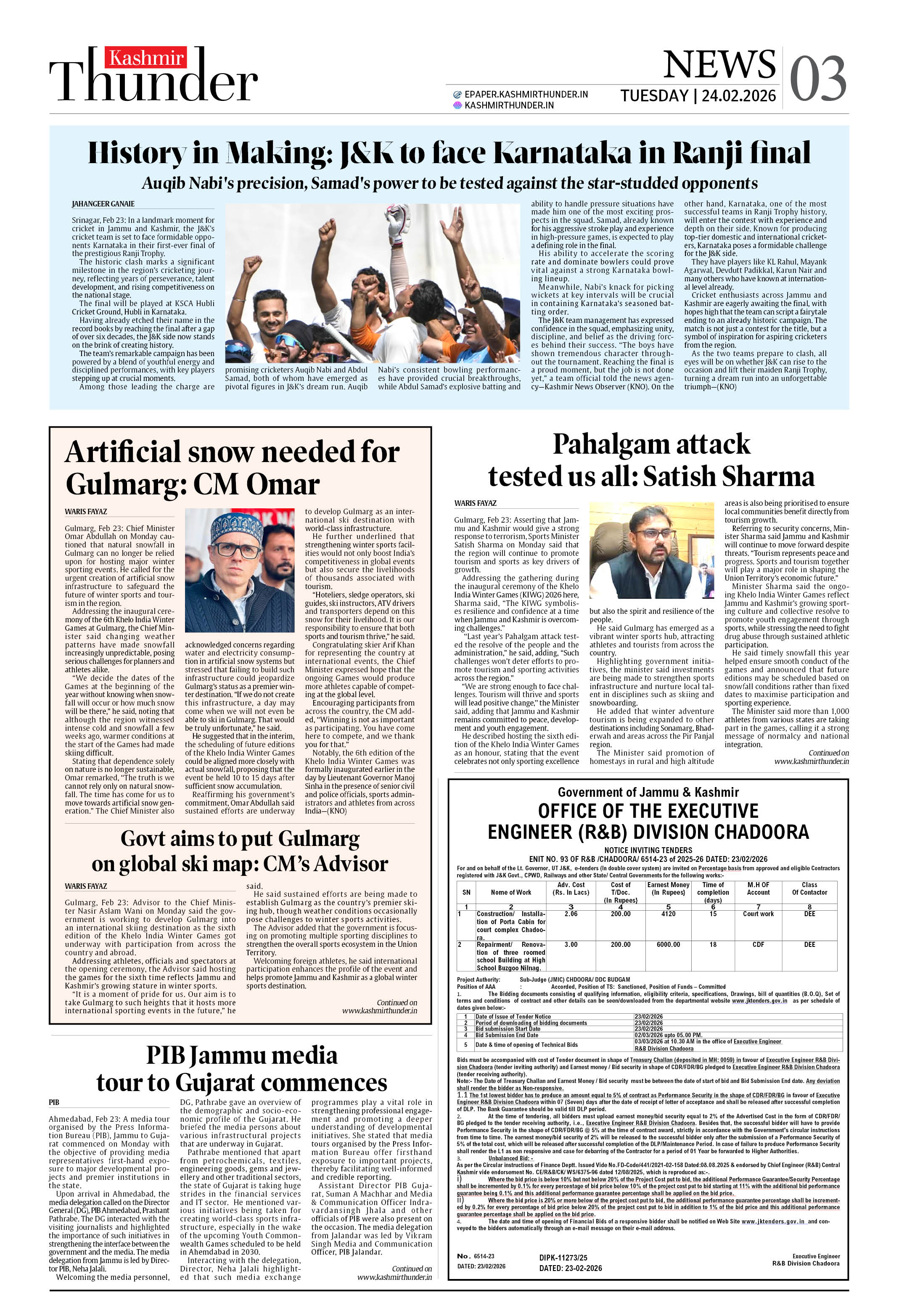 Kashmir Thunder FEB 24 2026 Page: 3 Kashmir Thunder FEB 24 2026 × Kashmir Thunder FEB 24 2026 12345678 Full PDF