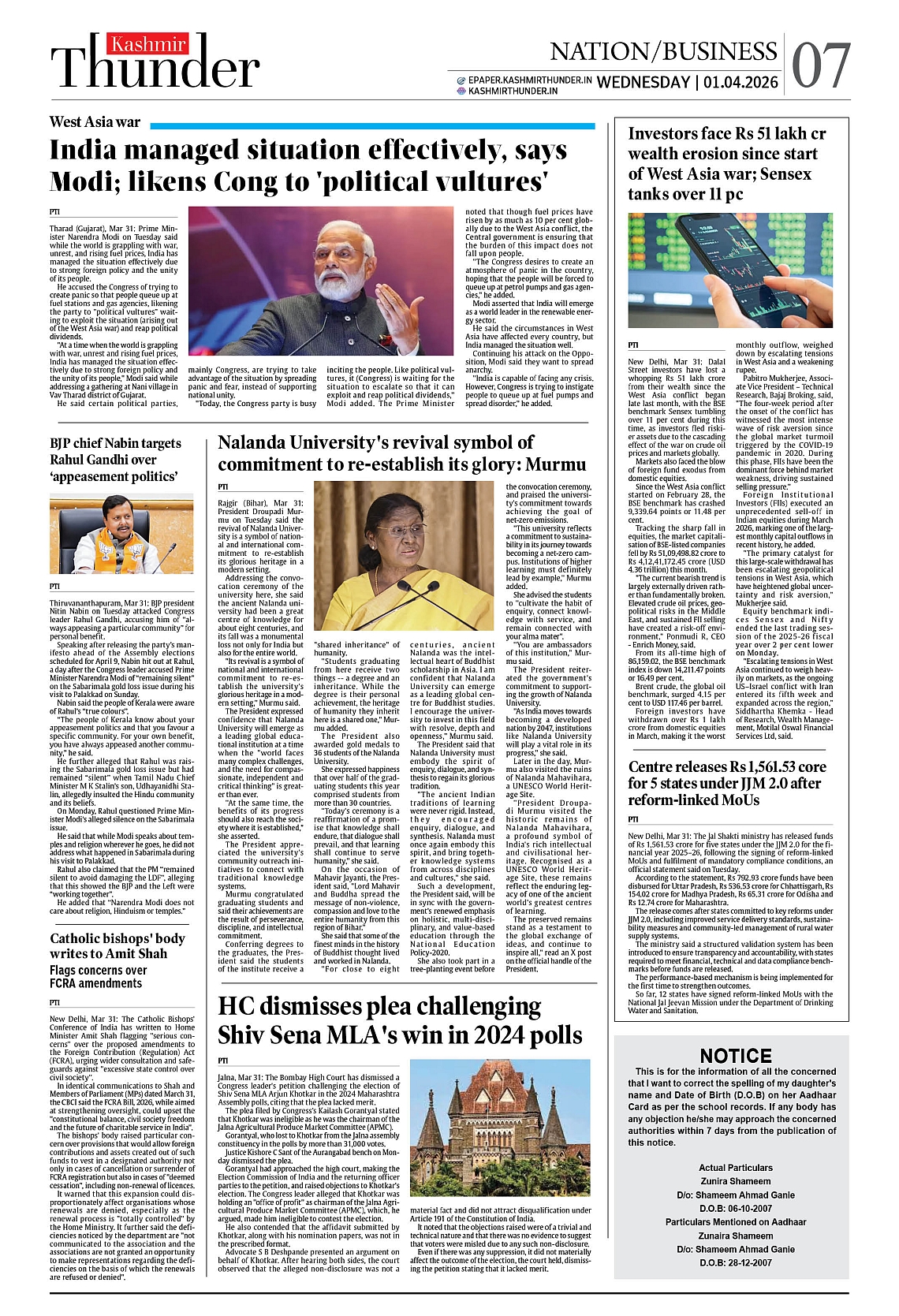 Kashmir Thunder APRIL 01 2026 Page: 7 Kashmir Thunder APRIL 01 2026 × Kashmir Thunder APRIL 01 2026 12345678 Full PDF