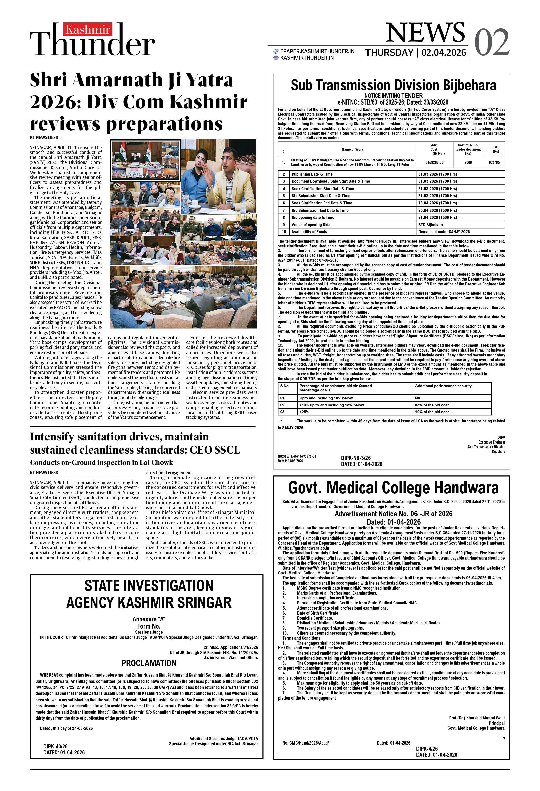 Kashmir Thunder APRIL 02 2026 Page: 2 Kashmir Thunder APRIL 02 2026 × Kashmir Thunder APRIL 02 2026 12345678 Full PDF