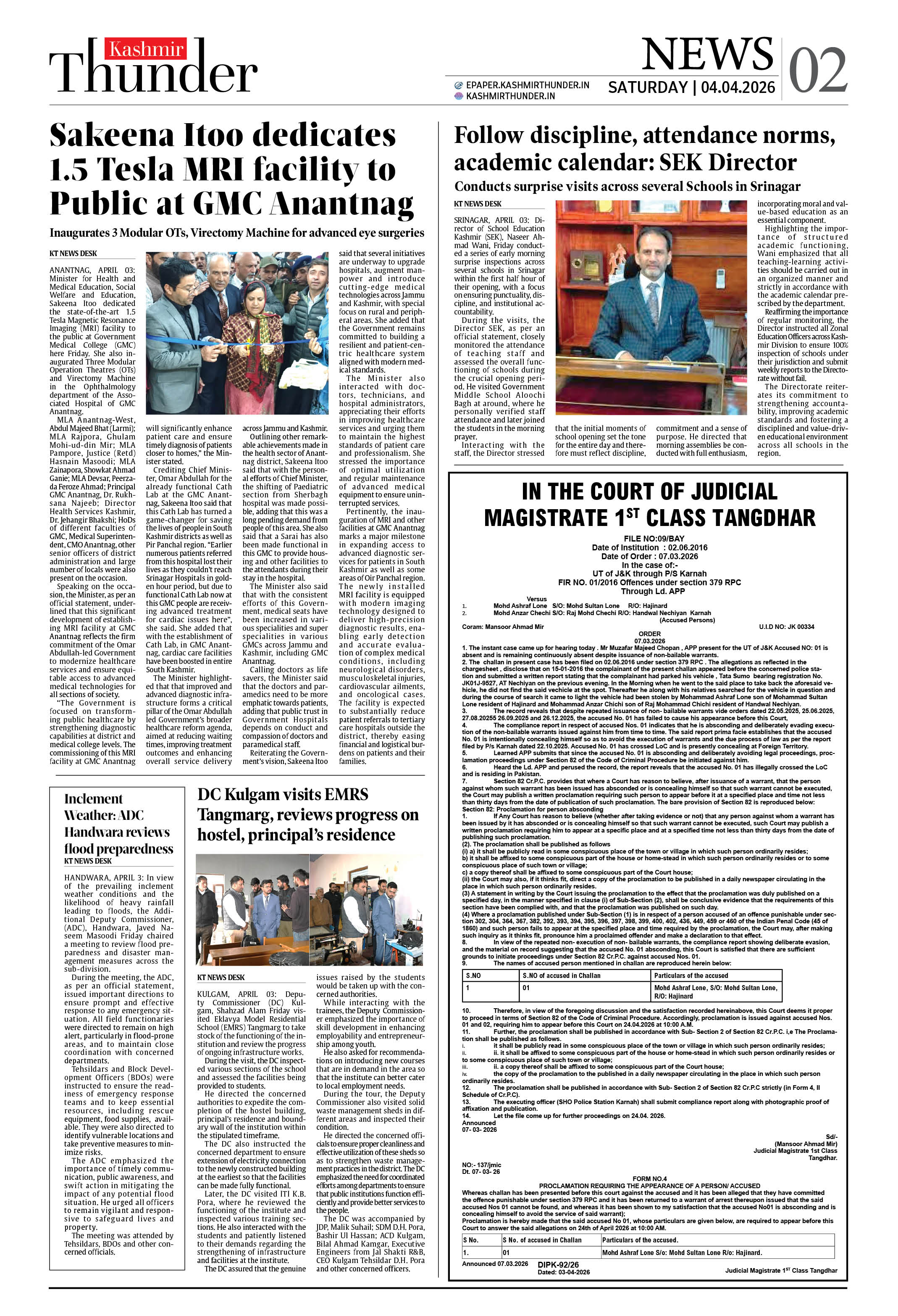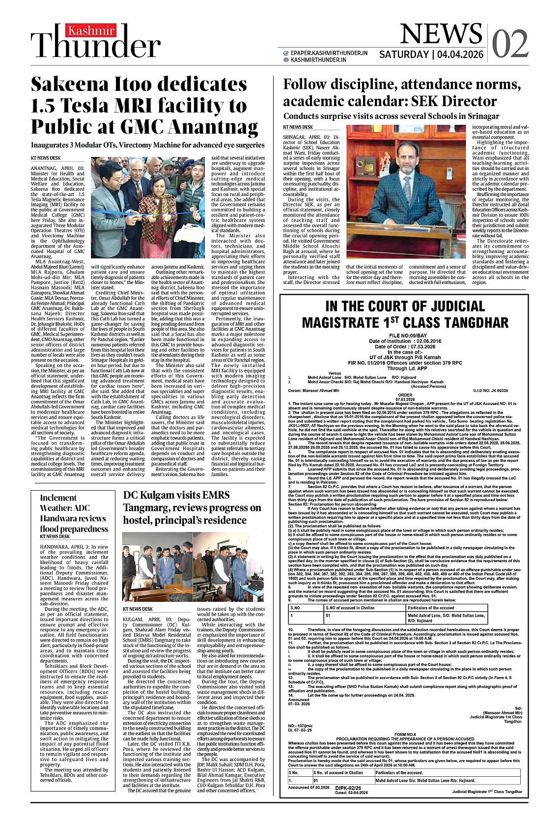 Kashmir Thunder APRIL 04 2026 Page: 2 Kashmir Thunder APRIL 04 2026 × Kashmir Thunder APRIL 04 2026 12345678 Full PDF