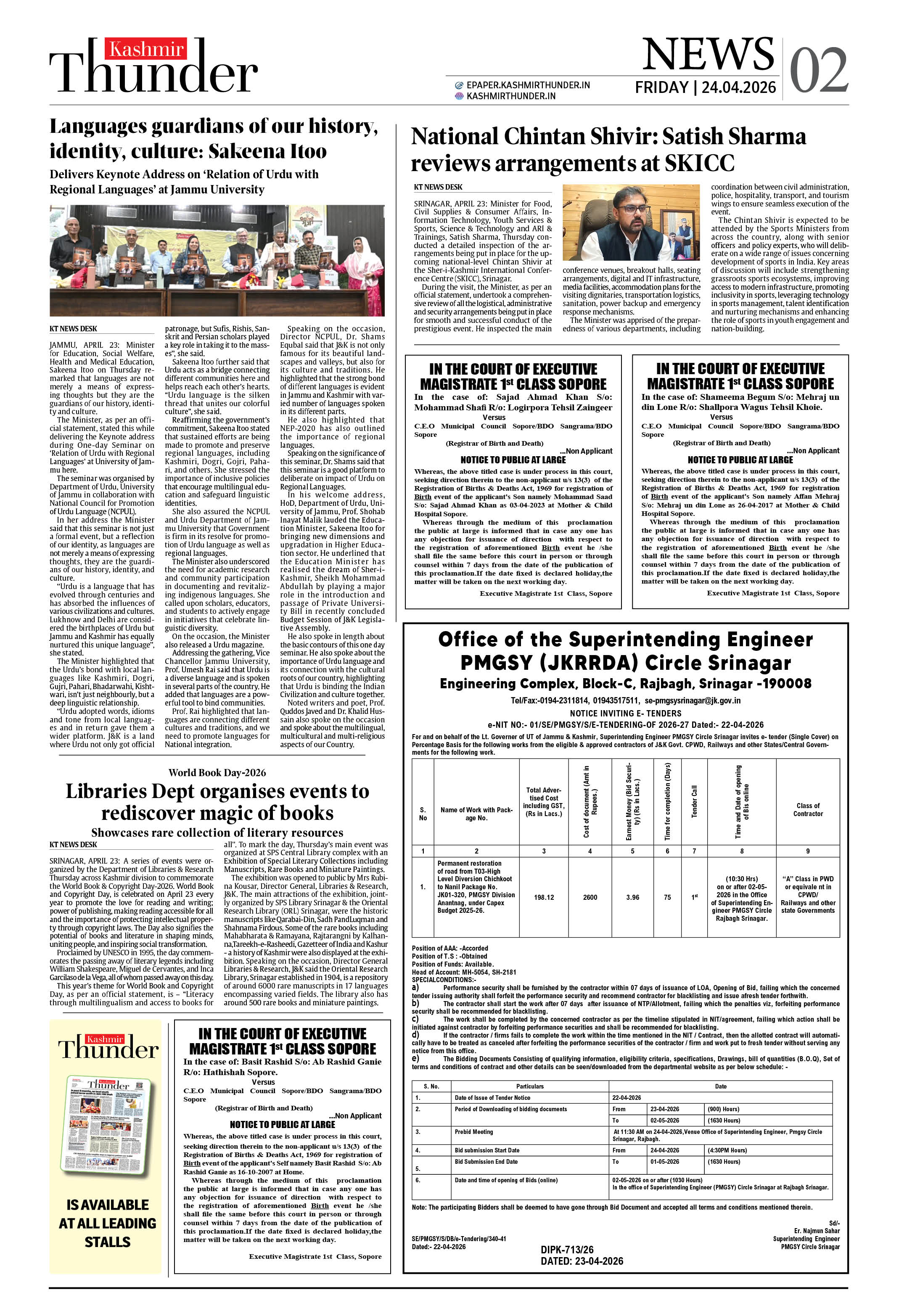 Kashmir Thunder APRIL 24 2026 Page: 2 Kashmir Thunder APRIL 24 2026 × Kashmir Thunder APRIL 24 2026 12 T3 T4567 T8 T Full PDF